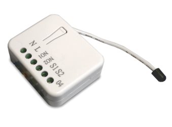 The compact radio module is placed in a wall box right behind the normal switch. The switch is no longer directly connected to the loads but acts as input device for the Philio insert that is controlling the loads. The switch only sends control signal to the insert which controls the loads then again. The solution works with all switch design. You can use a momentary or a toggle switch. It’s recommended to use wall boxes with 65mm depth. But smaller boxes with only 45mm depth can be used also if there is enough space behind the switch. The available space depends on the size of the traditional switch, the dimensions of the wall box and the amount of additional cabling placed in this box.
